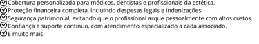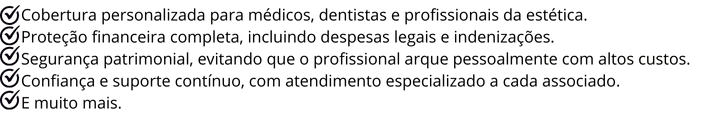 Desenvolvemos um plano personalizado para cada profissional, seja ele médico, dentista ou/ e profissionais na área de estética. Contando com garantias específicas para as necessidades desses profissionais.